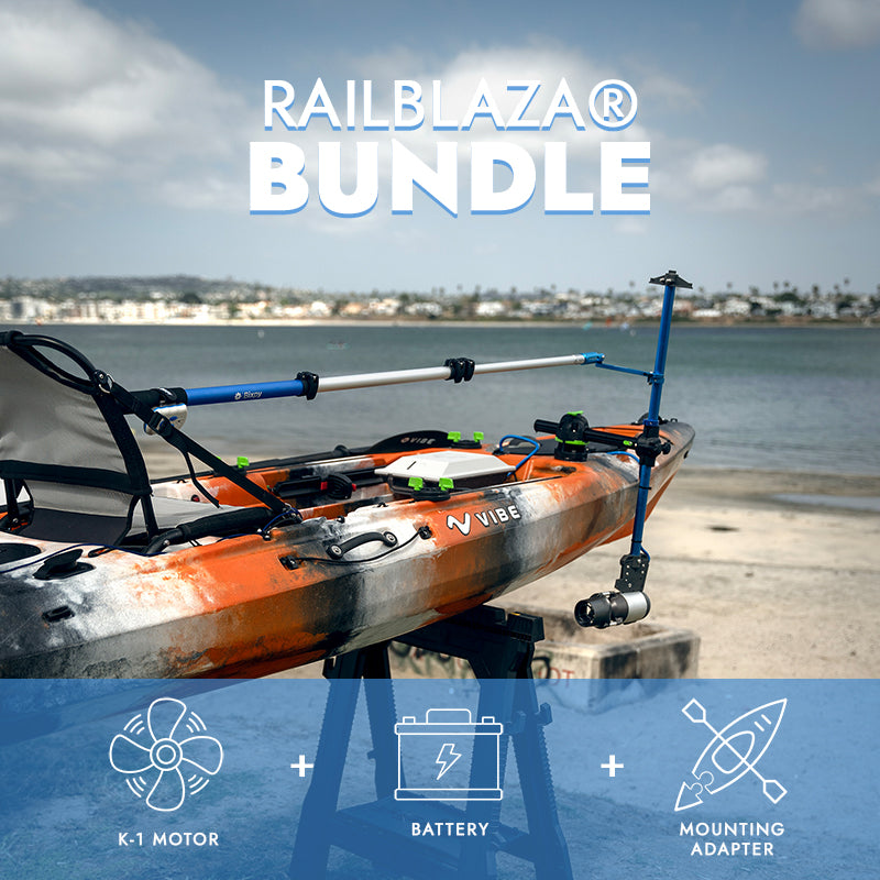 The RailBlaza® Bundle offers a simple and flexible solution for motorizing your small watercraft. Featuring the RailBlaza® Hexx mount, this adapter securely attaches to T-Tracks or any flat surface measuring at least 3 inches wide.